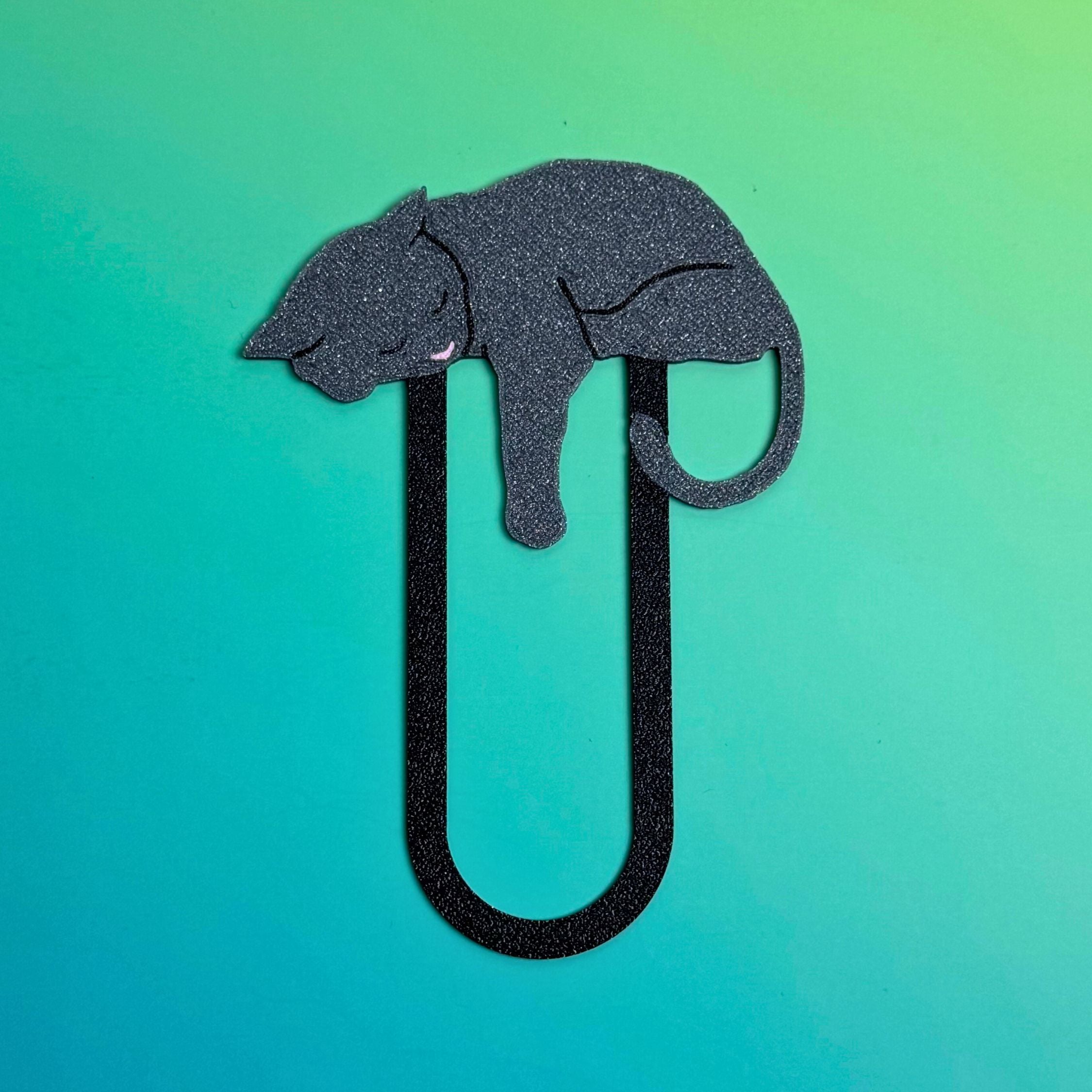 Adorable Sleepy Gray Cat Bookmark - Flexible Paperclip Design