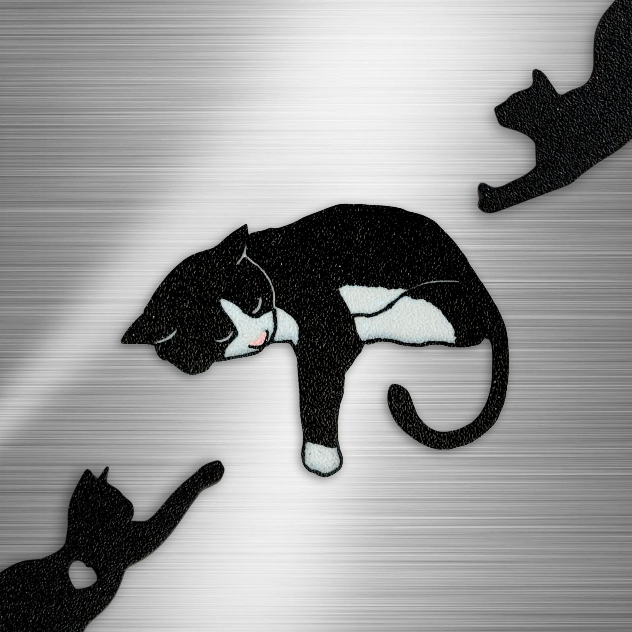 🐾 Each magnet features a charming tuxedo cat in a relaxed, laying-down pose, complete with sweet pink "toe beans" that will bring a smile to anyone's face.