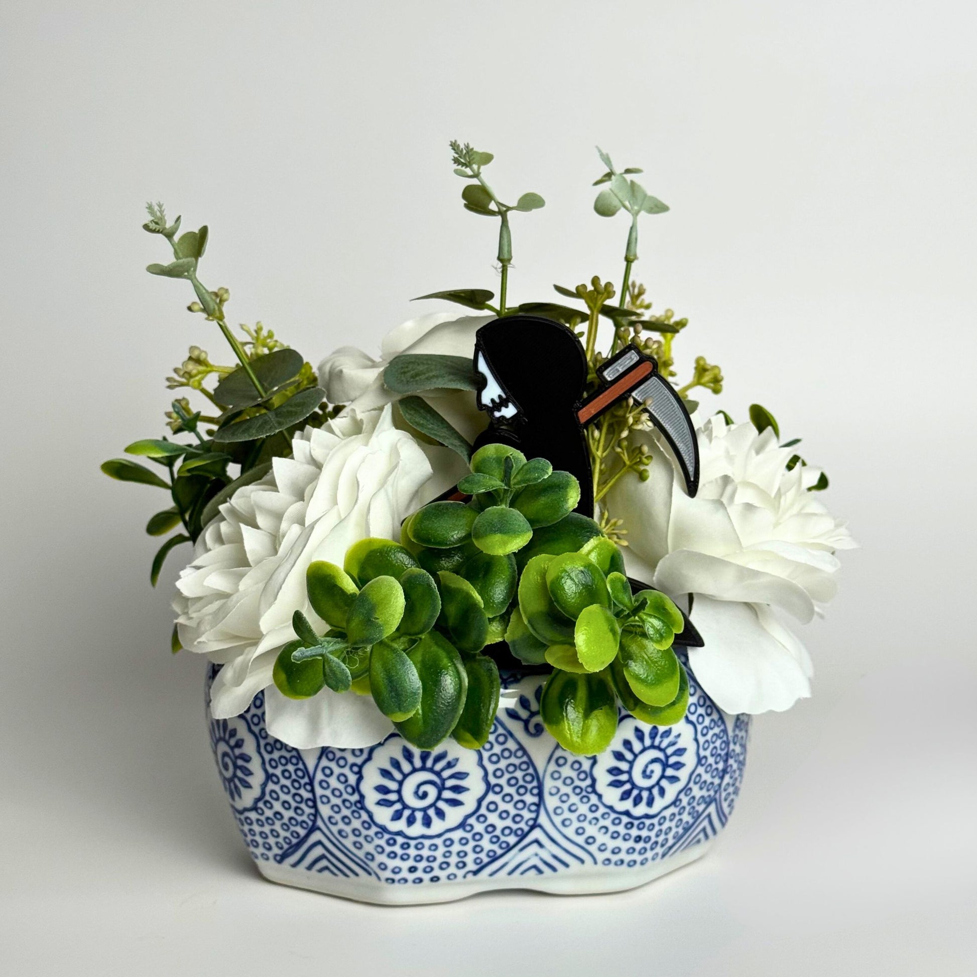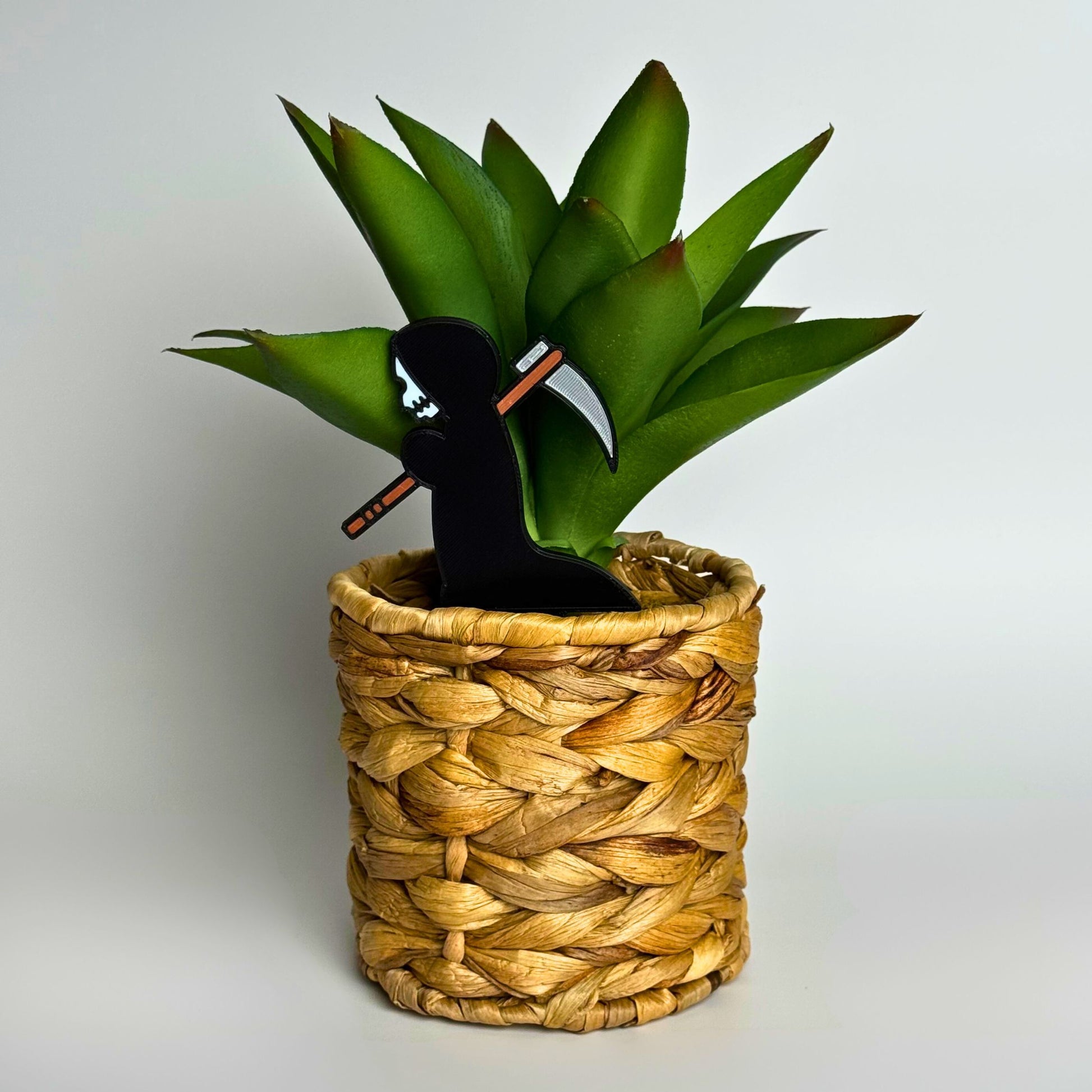 Add a spooky twist to your indoor garden or bring a smile to a friend's face with our Grim Reaper Halloween Plant Stakes.