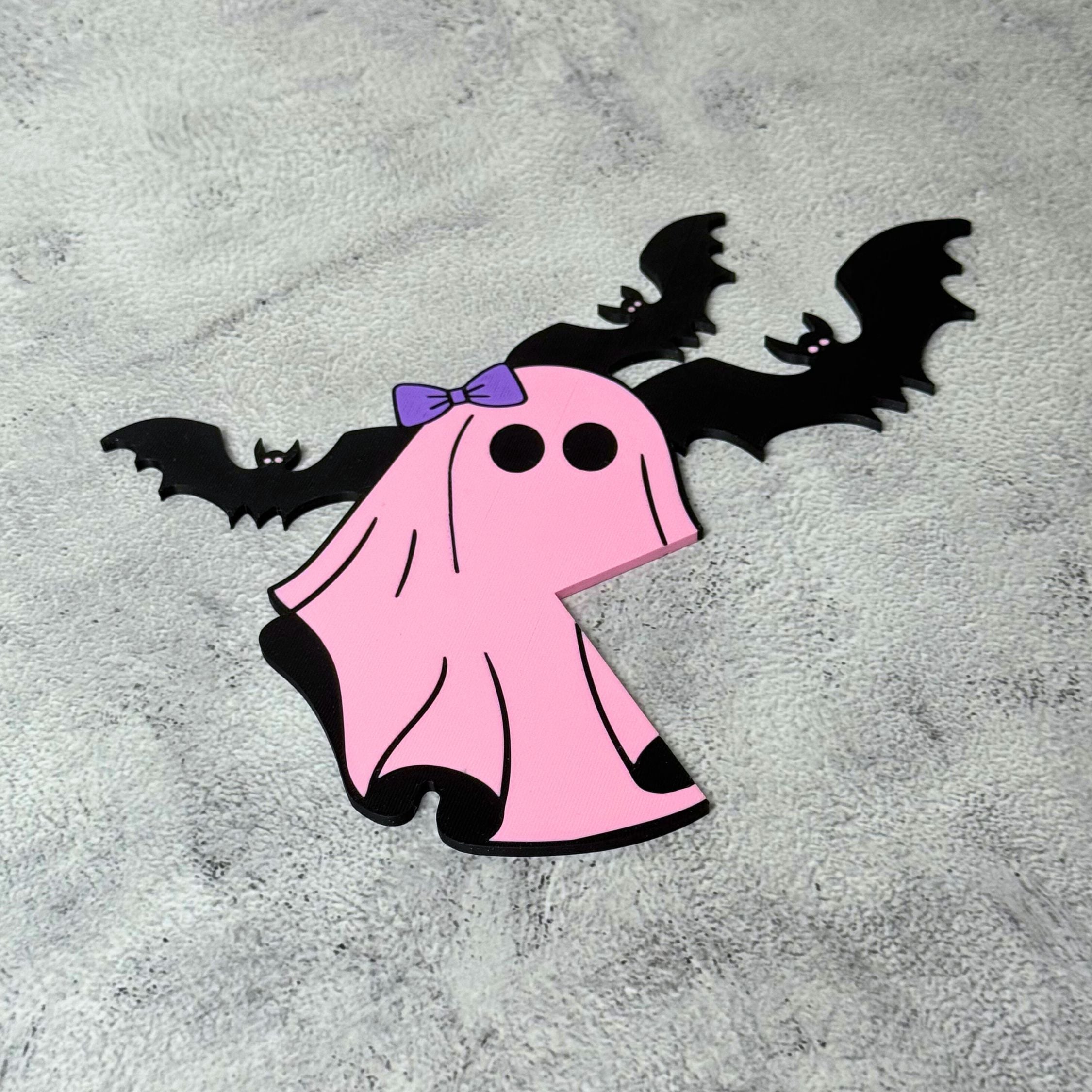 Welcome the spooky season with our Pink Ghost Door Decor. This ghostly piece features a charming design with playful ghosts, a flurry of bats, and a mystical autumn vibe.