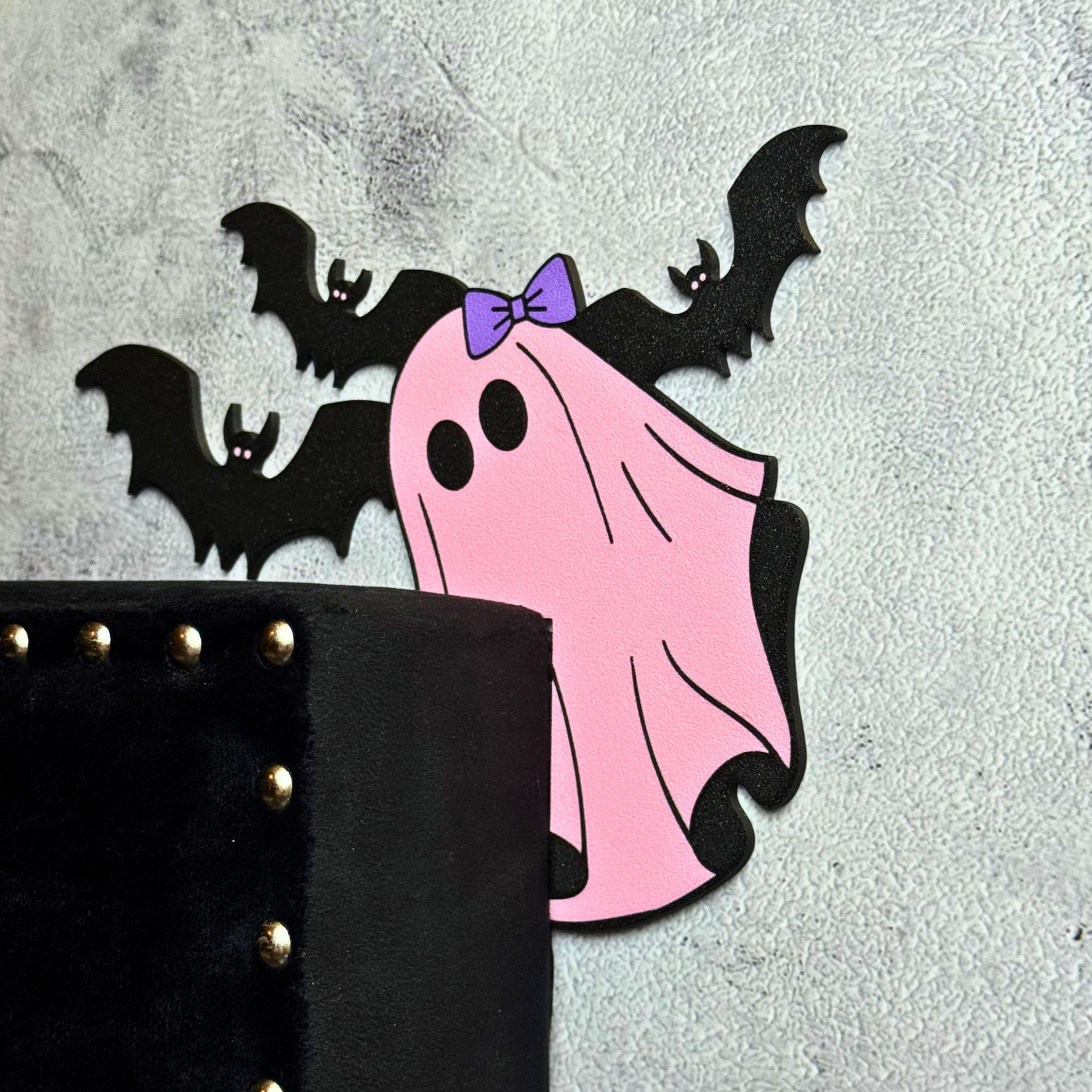 Pink Ghost Bat Halloween Door Corner Sign