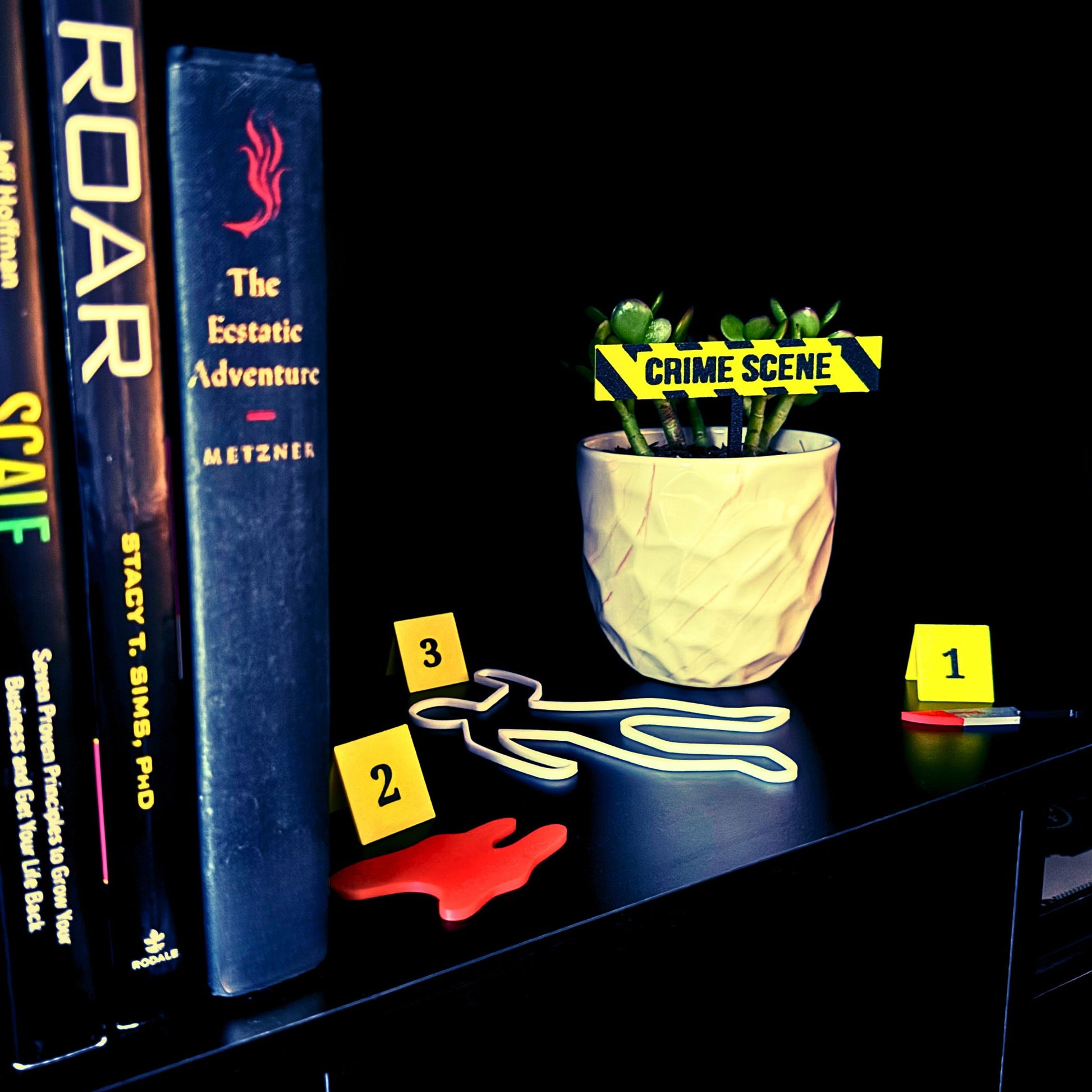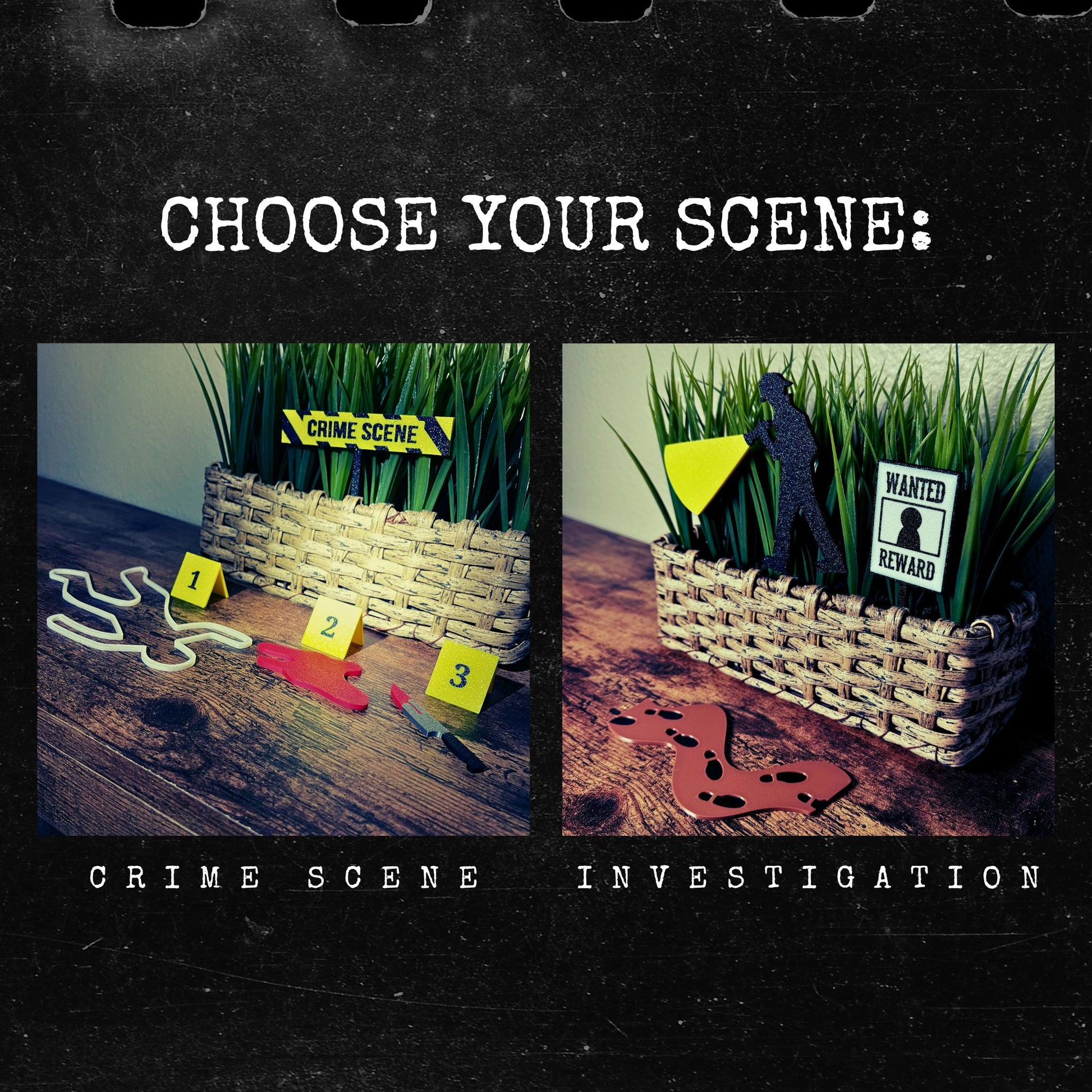 Transform your indoor garden, aquarium, or bookshelf into a thrilling crime scene with our Crime Scene Plant Stake Sets.