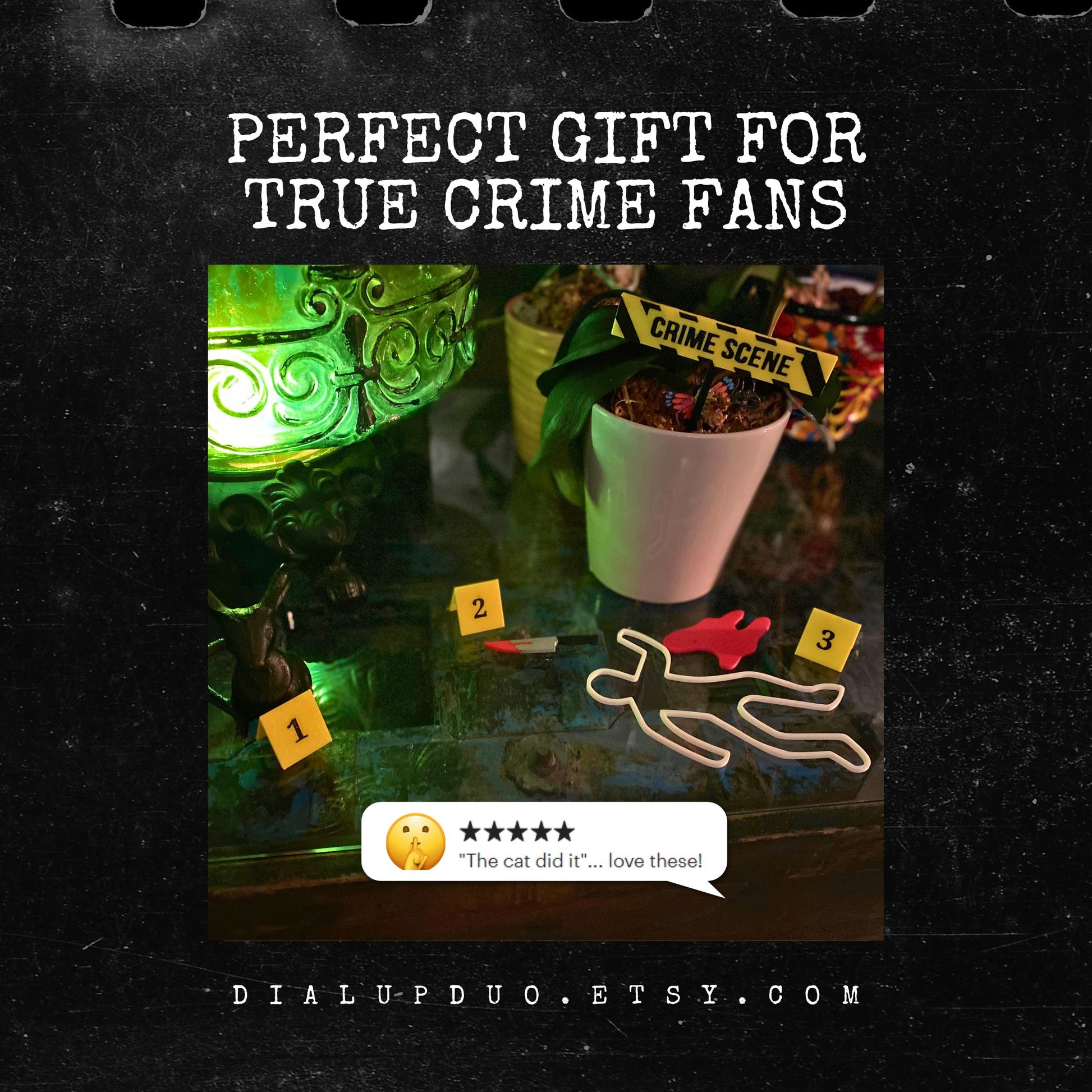 🎁 Looking for standout library decor? This set is perfect for anyone who loves true crime podcasts, enjoys Halloween, or has a flair for unusual and dramatic home decor.