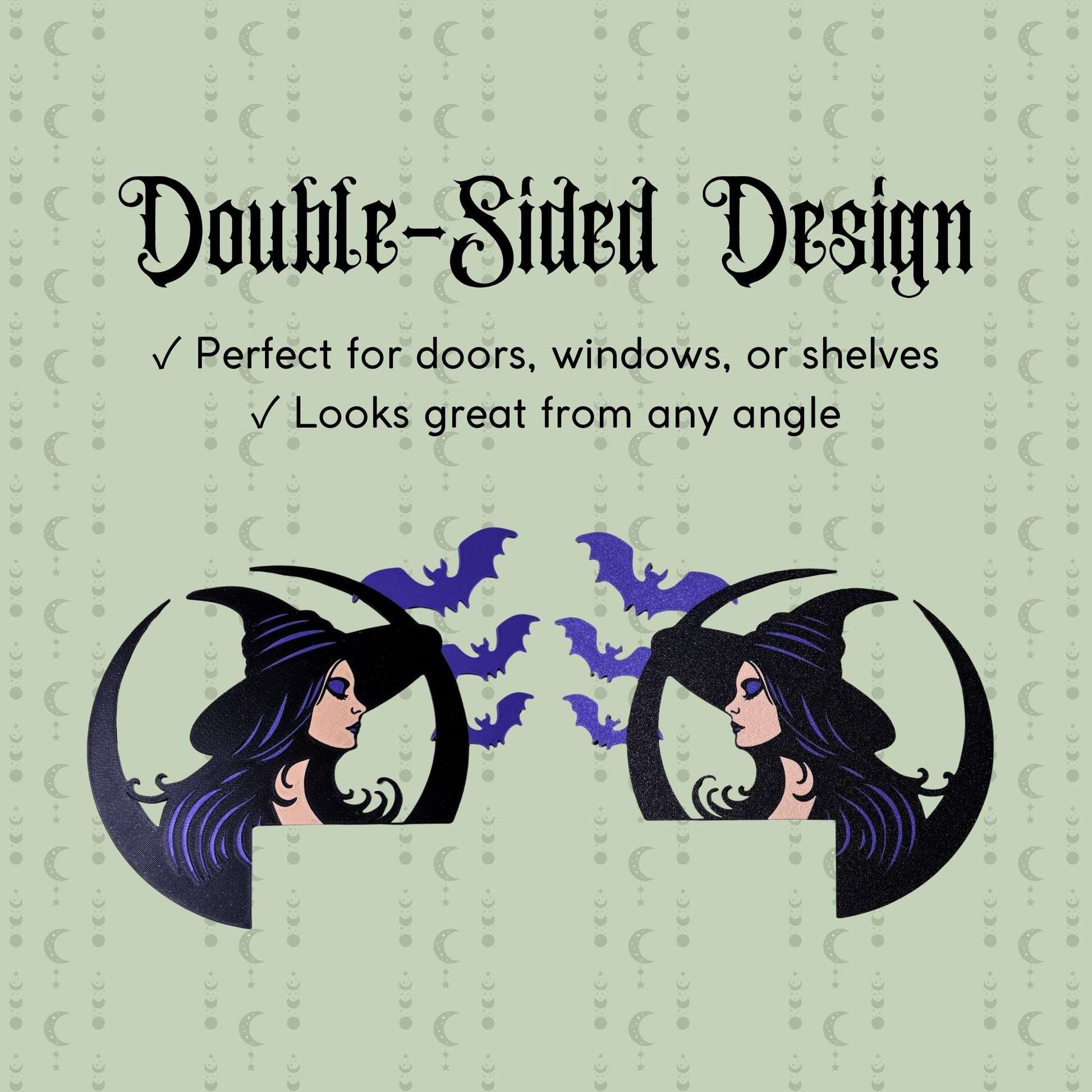 🌙 Lightweight and easy to hang, the double-sided design ensures it looks stunning from any corner or angle. Perfect for doors, hallways, or walls, it brings instant witchy charm to your Halloween or autumn decor. Looking for different colors? Send us a message!